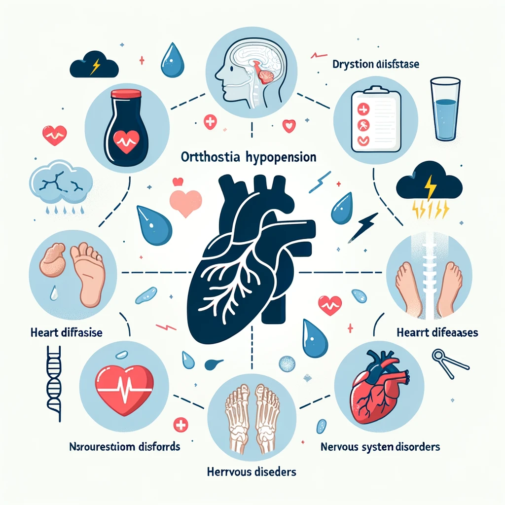 - 약물: 이뇨제, 항우울제, 항고혈압제 등의 약물이 기립성 저혈압을 유발할 수 있습니다. 이러한 약물은 혈액량 감소 또는 혈관 확장을 초래하여 혈압을 낮출 수 있습니다.