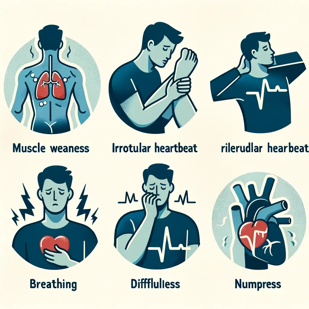- 마비 및 감각 이상: 손이나 발의 저림, 따끔거림, 심한 경우 마비가 발생할 수 있습니다. 이는 신경 기능에 영향을 미치는 고칼륨 혈증의 결과입니다.