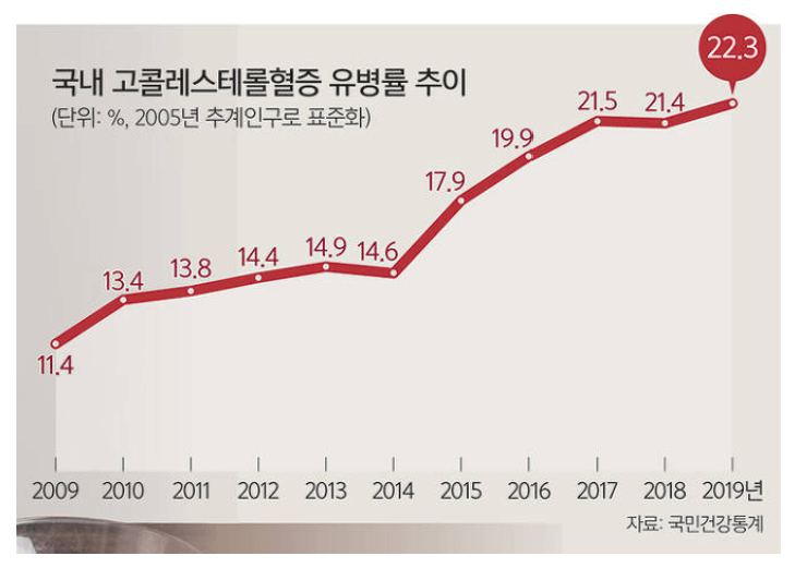 나이가 들면서 건강관리가 새삼 중요함을 느끼게 됩니다. 매년 이상지질혈증의 환자는 증가하고 있고, 이제 주위에 5명 중의 1명은 이상이 있다고 봐야 합니다. 그만큼 신경 써서 관리를 해줘야 하는 건강지표 중에 하나입니다.