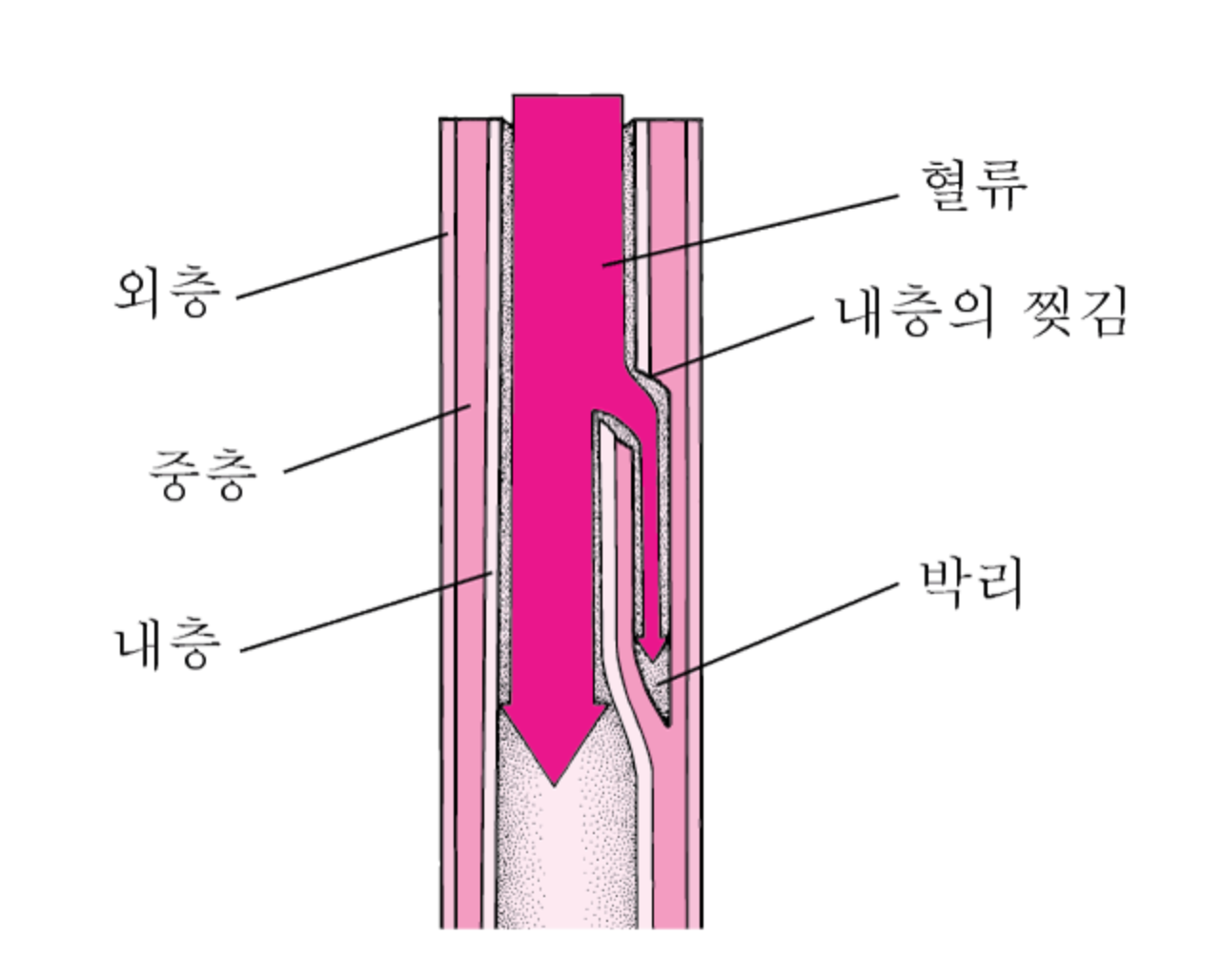 대동맥 박리는 대동맥 병의 내층(내막)이 찍어져 벽의 중간층과 분리되는 장애로 꽤 치명적인 질병입니다.